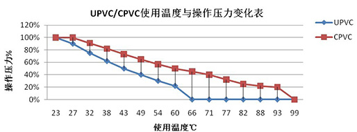4、UPVC/CPVC管道之使用溫度與操作壓力對照表